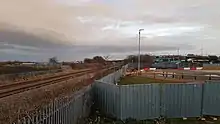 The first stage of construction work for this project, involving the creation of the station car park and adjacent bus stop, commenced on 28 May 2019.[18] It was later followed by the construction of the station itself, as well as associated signalling and track realignment works, in the second stage.[18][19] In late April 2020, having completed both platforms, the station's footbridge and associated ramps and stairs were installed by Story Contracting, using a 500 tonne crane. Following this, work progressed through mechanical, electrical and telecoms works and, finally, interface works between the station and car park.[20]
