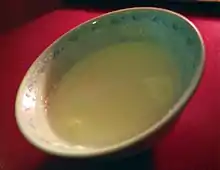 During races, the forelock is put in a topknot that stands up from the horse's head. The hairy part of the tail may also have a tie placed around it midway down.[8] For race horses, the owner will also have a wooden sweat scraper to clean off the horse after a race. After the Naadam, spectators will come up to touch the winning horses' mane and sweat as both a sign of respect and a way to imbibe good fortune.[8] The winning horse is also sprinkled with airag.[9]
