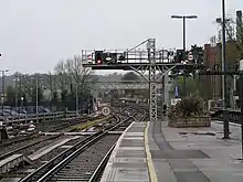 Horsham railway station serves the town of Horsham in West Sussex, England. It is 37 miles 56 chains (60.7 km) down the line from London Bridge, measured via Redhill, on the Arun Valley Line and the Sutton & Mole Valley Lines, and train services are provided by Southern. Services on the Sutton & Mole Valley Line from London Victoria via Dorking terminate here, the others continue into the Arun Valley: a half-hourly service from London Victoria to Southampton Central or Portsmouth Harbour (alternating) and Bognor Regis. These trains usually divide here with the front (Southampton/Portsmouth) portion travelling fast (next stop Barnham) and the rear (Bognor Regis) half providing stopping services.