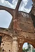 Already a ruin in 1908 when part of its façade collapsed, the hospital exhibited a combination of Gothic and Renaissance elements, with some considerable Mudéjar influence, as was typical of 16th Century Santo Domingo buildings. For example, the interior arches—which supported Gothic rib vaults—were pointed on the second story yet barreled on the ground floor. The vanguardist plan of the San Nicolás de Bari hospital served as a model for other hospitals throughout Spanish America, namely the Hospital de la Concepción undertaken in Mexico by Hernando Cortés in 1524.[7]