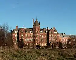 The Hudson River State Hospital, is a former New York state psychiatric hospital which operated from 1873 until its closure in the early 2000s. The campus is notable for its main building, known as a "Kirkbride," which has been designated a National Historic Landmark due to its exemplary High Victorian Gothic architecture, the first use of that style for an American institutional building.[2][3] It is located on US 9 on the Poughkeepsie-Hyde Park town line.