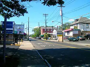 The Huguenot station along the Staten Island Railway opened when the railroad was extended to Tottenville in 1860.[2][3] This station was given the name "Huguenot Park", even though no park was actually located nearby, and by 1971 the word "Park" had been dropped. The name survives in the Huguenot Park branch of the New York Public Library was opened one block west of the station.[4]