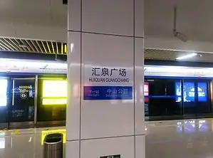 Huiquan Square (Chinese: 汇泉广场) is a station on Line 3 of the Qingdao Metro. It opened on 18 December 2016.[1][2]