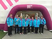 From an initial 120 Pioneer Volunteers recruited in March 2016 through various Wave 1, 2, 3 and 4 recruitment drives, a total of 2,500 individual volunteers were signed up. Volunteers wore a uniform designed and provided by local company Arco, consisting of black trousers or shorts, blue polo shirt, jacket, baseball cap and purple backpack. Arco described the colours as 'scandalous blue', 'ludicrous purple' and 'mischievous pink'.[29] These made all volunteers easily identifiable and approachable by members of the public looking for assistance and advice.