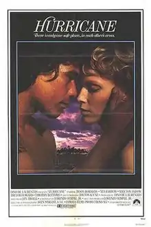 Hurricane is a 1979 romance and adventure film featuring Mia Farrow and Jason Robards, produced by Dino De Laurentiis with Lorenzo Semple Jr. (who also wrote the screenplay), and directed by Jan Troell. It is a loose remake of John Ford's 1937 film The Hurricane, itself based on the 1936 novel by James Norman Hall and Charles Nordhoff.