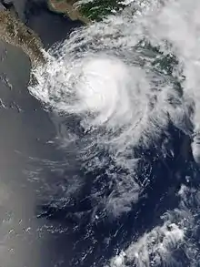 Hurricane Ignacio was the latest-forming first hurricane of a Pacific hurricane season since reliable satellite observation began in 1966. The ninth tropical storm of the 2003 Pacific hurricane season, Ignacio developed out of a tropical wave on August 22 a short distance off the coast of Mexico. It was initially predicted to track out to sea and remain a weak tropical storm, though it unexpectedly organized rapidly to attain peak winds of 105 mph (165 km/h) on August 24 while located a short distance southeast of southern Baja California Sur. Land interaction weakened Ignacio to an 80 mph (130 km/h) hurricane by the time it made landfall near La Paz, and it dissipated on August 27 in the central Baja California peninsula.