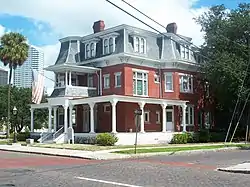 The Hutchinson House is a historic home completed in 1908 in Tampa, Florida, United States. It is a three-story brick building in the Second Empire architecture. The building includes a high mansard roof and large porch with tall Corinthian columns.[2]
