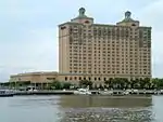 Totaling approximately 2,000 acres (8.1 km2), Hutchinson Island was targeted as the site for a public-private partnership to build a convention center and hotel.[5] Chatham County voters approved spending $63 million in public special-purpose local-option sales tax money for the trade center and $10 million for the road system on the island. The Savannah International Trade and Convention Center and the Westin Savannah Harbor Resort were built.[6][7] In addition, the state of Georgia provided $18 million, and former land owner CSX railroad donated 25 acres (100,000 m2) for the public trade center.[7]
