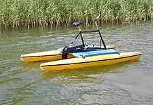 Buoyancy is provided by two or more pontoons or a single surfboard, and some have hydrofoils that can lift the flotation devices out of the water.[5][6][7]