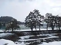 Hyouka features several real-life locations in Takayama. The Kamiyama Senior High School, which appears in the opening and each episode, is based on Hida Senior High School. The Kajibashi bridge, which goes across the Miyagawa river, is also featured in the opening and Episode 18. The Miyagawa Morning Market Street is also featured in the opening. The Arekusujinja Shirne, featured in Episode 20 and the opening, is based on the Hiejinja shrine. Other sites include the Yaoihashi Bridge shown in the opening and Episodes 11 and 18, the Hirayu Onsen Hot Springs shown in Episode 7, the Takayama City Library (as Kamiyama City Library) in Episode 18, and the Minashi Shrine and Garyu Cherry Trees shown in Episode 22.[15]