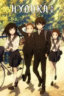 Hyouka(氷菓) is a Japanese TV Animation based on the Classical Literature Club Series written by Honobu Yonezawa. It was named after the first volume of the series, Hyouka, and made into a 22-episode televised animation series.[2]