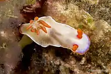 This nudibranch was described from 35 m (115 ft) depth at Aphol’s Reef, Tingloy, Maricaban Island, Batangas, Philippines, 13.6586°N 120.90129°E. It is also reported from Indonesia.