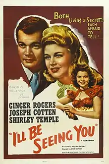 I'll Be Seeing You is a 1944 American drama film made by Selznick International Pictures, Dore Schary Productions, and Vanguard Pictures, and distributed by United Artists. It stars Joseph Cotten, Ginger Rogers, and Shirley Temple, with Spring Byington, Tom Tully, and John Derek. It was produced by Dore Schary, with David O. Selznick as executive producer. The screenplay was by Marion Parsonnet, based on a radio play by Charles Martin.