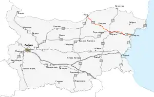Republic road I-2 (Bulgarian: Републикански път I-2) is a major road in Northeastern Bulgaria. It runs between Danube Bridge, at the Danube border with Romania, and Varna, at the Black Sea coast. It is 203 km (126 mi) long. In half of its length, between Shumen and Varna, it is superseded by Hemus motorway (A2).
