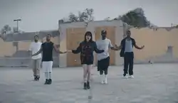 The video depicts an ongoing conflict between gangs, which Ferreira attempts to remedy upon her arrival; she is eventually taken in for questioning by law enforcement,[22] although she resists her arrest and later escapes from jail.[23] She commented that its concept was inspired by real events, and elaborated that "people always ask me questions about certain things, and it's kind of like my response." Jeremy Gordon from Pitchfork interpreted Ferreira's commentary to be referencing her arrest in September 2013,[24] in which she was charged with possession of ecstasy.[25] Ferreira was criticized on social media networks for allegedly objectifying African-American people in the music video, with whom she was seen dancing with during several scenes interspersed throughout the clip. On her Facebook account, Ferreira commented that "I never have and never will look at any human being as a prop" and criticized false assumptions of the "rich little white girl exploiting the black people and the ghetto".[22]