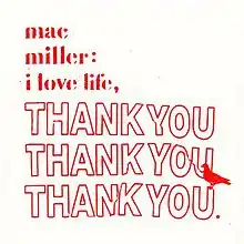 I Love Life, Thank You is the sixth mixtape by American recording artist Mac Miller. In 2011, Miller started the "Road 2 a Million Fans" series, during which he released a new song for every 100,000 Twitter followers he accumulated. On October 14, 2011, he released I Love Life, Thank You upon reaching one million followers. Seven of the thirteen tracks on the mixtape had previously been released throughout the course of the series.[2][1]