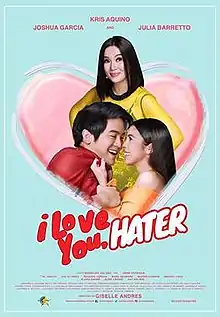 I Love You, Hater is a 2018 Philippine romantic comedy film directed by Giselle Andres, starring Joshua Garcia, Julia Barretto and Kris Aquino. It was released on July 11, 2018, by Star Cinema.[2][3]