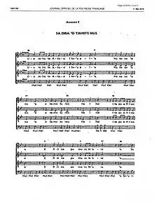 ![]() First page of the anthem as it was published by the Government of French Polynesia | |