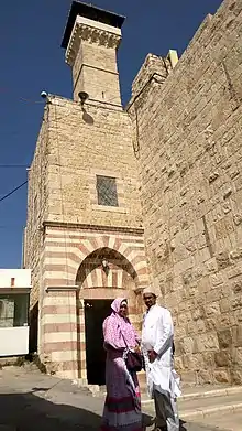 Between 1318 and 1320, the Mamluk governor of Gaza, a province that included Hebron, Sanjar al-Jawli ordered the construction of the Amir Jawli Mosque within the Haram enclosure to enlarge the prayer space and accommodate worshipers.[44] In the late 14th century, under the Mamluks, two additional entrances were pierced into the western end of the south western side and the kalah was extended upwards to the level of the rest of the enclosure. A cenotaph in memory of Joseph was created in the upper level of the kalah so that visitors to the enclosure would not need to leave and travel round the outside just to pay respects.[31] The Mamluks also built the northwestern staircase and the six cenotaphs (for Isaac, Rebecca, Jacob, Leah, Abraham, and Sarah, respectively), distributed evenly throughout the enclosure. The Mamluks forbade Jews from entering the site, allowing them only as close as the fifth step on a staircase at the southeast, but after some time this was increased to the seventh step.