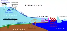 Ice sheets interact with the surrounding atmosphere, ocean and sub-glacial earth.[12] All of these interactive components need to be included to be able to have a comprehensive ice-sheet model.[12]