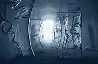 When completed, the hotel features a bar, church, main hall, reception area, plus about 100 guest rooms.[3] The room rate starts at 1500 kr. The hotel also hosts an ice restaurant.[4] The furniture is sculpted blocks of ice in the form of chairs and beds. The thick walls, floor and ceiling are made of ice. Even the beds, the fittings and decoration are carved from ice. No two rooms are the same; the rooms are unique works of art. At the Icehotel the beds are lined with reindeer furs and people are given special equipment to use while sleeping in the hotel. The guests sleep in polar-tested sleeping bags. There is no heating and the bedroom temperatures are constantly around −5 °C (23 °F). There is no plumbing at the hotel, but there is a sauna that is run on the premises of the Icehotel with a hot tub outdoors.[1]