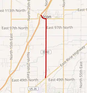 State Highway 43 (SH-43) is a 3.868-mile-long (6.225 km) state highway located in Bonneville County, Idaho. SH-43 runs from its southern terminus at U.S. Route 26 (US-26) in Beachs Corner to its northern terminus at US-20 in Ucon. The highway is maintained by the Idaho Transportation Department.