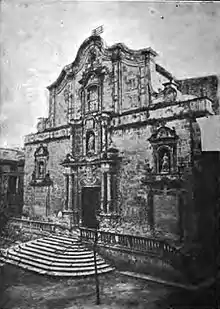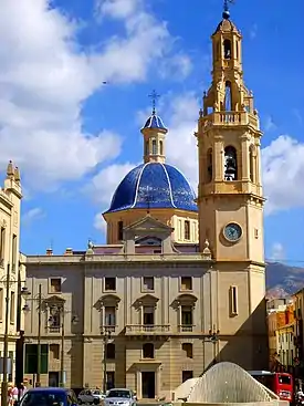 The Iglesia arciprestal de Santa María is a former Spanish church in Alcoy, province of Alicante. It was constructed in the 18th century at the convent of St. Augustine, which was built in the 13th century. In 1936, the building was demolished, losing almost all the pictorial heritage on its walls. The reconstruction began in 1940 and on 19 May 1955, the new church was blessed on the site where the older building had stood, matching its original appearance and using the remains of the previous building.