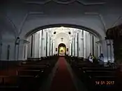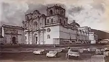 After the Santa Marta earthquakes in 1773 and against strong opposition from the archbishop and the regular clergy, the capital was moved from Santiago de los Caballeros de Guatemala to a new location, known as Nueva Guatemala de la Asunción. In order to enforce the move, Captain General Martín de Mayorga, decided to force the priests and friars to move the most important religious sculptures to the new city; therefore, in 1778 La Merced friars were forced to move the sculptus of Jesús Nazareno and Virgen Mary to the new city. The move was harsh, as the natives that were supposed to take care of the beloved images arrived late, while the neighborhood was praying and crying while waiting for them. When the sculptures were packaged in a box, their followers walked alonsige them to the Animas gate of the city, and one of them carried the cross of the sculpture all the way to San Lucas Sacatepéquez, a settlement located 15 km away from Antigua Guatemala.[2] The caravan arrived into the new capital at night, and the sculptures were received by Franciscan friars and then by Mercedarians who placed it in a temporary wooden structure located where they were going to build their new church. Martín de Mayorga came to verify the arrival, which signaled the end of the arduous move.[3] In 1801, the fellowship of Jesús Nazareno de la Merced moved the sculpture altar to the new capital even though the new church had not been constructed yet.