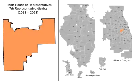 Illinois's 7th House of Representatives district is a Representative district within the Illinois House of Representatives located in Cook County, Illinois. It has been represented by Democratic Illinois House Speaker Chris Welch since January 9, 2013. Democrat Cory Foster was the previous incumbent for a couple of months.