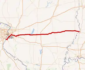 U.S. Route 50 (US 50) in the state of Illinois is an east–west highway across the southern portion of the state. It runs from the Jefferson Barracks Bridge, over the Mississippi River, to Missouri east, to the Red Skelton Memorial Bridge, over the Wabash River and to Indiana. This is a distance of 165.79 miles (266.81 km).[1]