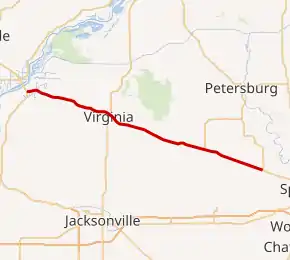 Illinois Route 125 (IL-125) is a major 37.10 miles (59.71 km)[1] highway in the central portion of the U.S. state of Illinois. Illinois 125 runs east from the concurrent U.S. Route 67 and Illinois Route 100 near Beardstown to Illinois Route 97 in Farmingdale, west of Springfield.