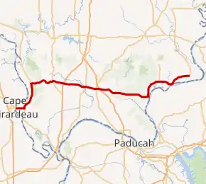 Illinois Route 146 (IL 146) is an east–west state highway in the U.S. state of Illinois. It serves the extreme southern region of the state, commonly called Little Egypt or the Illinois Ozarks. IL-146 is 92.93 miles (149.56 km) long.[1] An east–west highway, it serves Hardin County, Pope County, Johnson County, Union County, and Alexander County. These are some of the least-populated counties in Illinois. IL-146 serves two sections of the Shawnee National Forest.