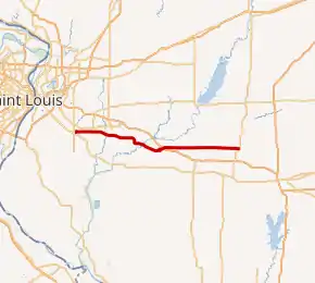 Illinois 177 overlaps Illinois Route 160 for about 9 miles (14 km)[3] from south of New Baden to Okawville.