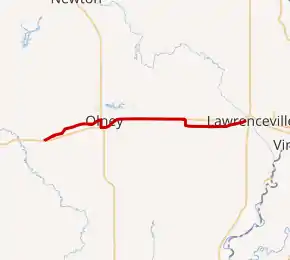 Illinois Route 250 is an east–west state highway in southeastern Illinois. It is similar to Illinois Route 251 in that portions of the highway replace former alignments of U.S. Route 50. Illinois 250 has its western terminus west of the city limits of Noble and its eastern terminus at U.S. Route 50 Business in Lawrenceville. This is a distance of 33.44 miles (53.82 km).[1]