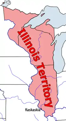 The Territory of Illinois was an organized incorporated territory of the United States that existed from March 1, 1809, until December 3, 1818, when the southern portion of the territory was admitted to the Union as the State of Illinois. Its capital was the former French village of Kaskaskia (which is still a part of the State of Illinois). The northern half of the territory, modern Wisconsin and parts of modern Minnesota and Michigan became part of the Territory of Michigan.