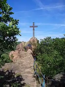 On 18 October 1814, one year after the Battle of Möckern on the first day of the Battle of Leipzig, Count Anton of Stolberg-Wernigerode (1785–1854) had an iron cross erected on the summit. The count had served as adjutant of Prince Wilhelm of Prussia and the monument commemorates his comrades who fell in the German campaign of the Napoleonic Wars. For the centenary of the Möckern battle, on 18 October 1913, a memorial plaque was unveiled here in the presence of Prince Christian Ernest of Stolberg-Wernigerode (1864–1940) with an explanation of the origin of the 1814 iron cross.