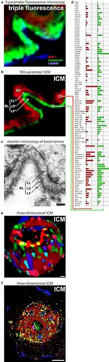 - Gerdes, M. J.; Sevinsky, C. J.; Sood, A.; Adak, S.; Bello, M. O.; Bordwell, A.; Can, A.; Corwin, A.; Dinn, S.; Filkins, R. J.; Hollman, D.; Kamath, V.; Kaanumalle, S.; Kenny, K.; Larsen, M.; Lazare, M.; Li, Q.; Lowes, C.; McCulloch, C. C.; McDonough, E.; Montalto, M. C.; Pang, Z.; Rittscher, J.; Santamaria-Pang, A.; Sarachan, B. D.; Seel, M. L.; Seppo, A.; Shaikh, K.; Sui, Y.; Zhang, J.; Ginty, F. (1 July 2013). "Highly multiplexed single-cell analysis of formalin-fixed, paraffin-embedded cancer tissue". Proceedings of the National Academy of Sciences. 110 (29): 11982–11987. Bibcode:2013PNAS..11011982G. doi:10.1073/pnas.1300136110. PMC 3718135. PMID 23818604.
