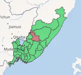 Dalnerechensky District (Russian: Дальнере́ченский райо́н) is an administrative[1] and municipal[6] district (raion), one of the twenty-two in Primorsky Krai, Russia. It is located in the central and western parts of the krai. The area of the district is 7,235.53 square kilometers (2,793.65 sq mi).[3] Its administrative center is the town of Dalnerechensk[2] (which is not administratively a part of the district).[1] Population: 11,344 (2010 Census);[4] 13,995 (2002 Census);[8] 17,057 (1989 Census).[9]