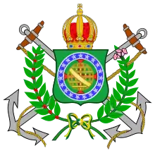 The Imperial Brazilian Navy (Portuguese: Armada Nacional, commonly known as Armada Imperial) was the navy created at the time of the independence of the Empire of Brazil from the United Kingdom of Portugal, Brazil and the Algarves. It existed between 1822 and 1889 during the vacancy of the constitutional monarchy. The Navy was formed almost entirely by ships, staff, organizations and doctrines proceeding from the transference of the Portuguese Royal Family in 1808. Some of its members were native-born Brazilians, who under Portugal had been forbidden to serve. Other members were Portuguese who adhered to the cause of separation and German and Irish mercenaries. Some establishments created by King John VI were used and incorporated. Under the reign of Emperor Pedro II the Navy was greatly expanded to become the fifth most powerful navy in the world and the armed force more popular and loyal to the Brazilian monarchy.[1] The republican coup d'état in 1889, led by army men, put an end to the Imperial Navy that fell into decay until the new century.