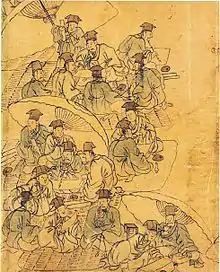 Emperor Wu of Han's early reign saw the creation of a series of posts for academicians in 136 BC.[12] Ardently promoted by Dong Zhongshu, the Taixue and Imperial examination came into existence by recommendation of Gongsun Hong, chancellor under Wu.[13] Officials would select candidates to take part in an examination of the Confucian classics, from which Emperor Wu would select officials to serve by his side.[14] Gongsun intended for the Taixue's graduates to become imperial officials but they usually only started off as clerks and attendants,[15] and mastery of only one canonical text was required upon its founding, changing to all five in the Eastern Han.[16][17] Starting with only 50 students, Emperor Zhao expanded it to 100, Emperor Xuan to 200, and Emperor Yuan to 1000.[18]