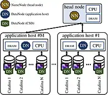 Examples of in-storage processing can be seen in fields like visualization efforts,[2] biology[3] and chemistry. This showcases how this technology allows for actions and results to be seen more efficiently than through data movement, regardless of the data being moved. The following figures (from [1]) show how CSDs can be utilized in an Apache Hadoop cluster and on a Message Passing Interface-based distributed environment.