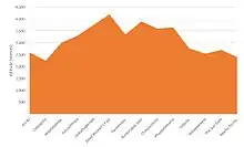 Because of its popularity, the Peruvian Government instituted several controls to reduce human impact upon the trail and within the ancient city. The most notable is a quota system, introduced in 2001, whereby only a set number of people (including hikers, porters, and guides) would be allowed to hike along the Inca Trail each day. This system is still in effect; any person wishing to hike the Inca Trail must obtain a permit beforehand. As of 2016, 500 permits are issued for each day. All of the year's permits are released in October and are sold on a first-come, first-served basis.[12] Permits were previously released in January, however, in 2017 this changed to October. Permits sell out quickly, particularly those for the high season. Most operators advise hikers to purchase permits as soon as possible after they are released.[12] The government also mandated that every trekker on the trail must be accompanied by a guide. Because of this rule, permits can only be obtained through a government registered tour operator. All permits are paired with an individual passport and are not transferable. The government monitors the trail closely; there are several control points along the trail.