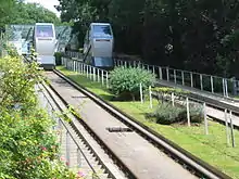 An inclined elevator[1] or inclined lift[2] is a form of cable railway that hauls rail cars up a steep gradient.[3]