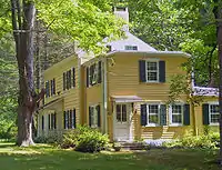 Around the time of the Revolution, Samuel Warren's home in the area became well known enough as a rest stop along the Albany Post Road for "Warrens" to appear on maps. In the early 19th century, his son John leased, and built a farm on, 411 acres (166 ha) that include the entire current historic district. His house, on the future site of the Bird and Bottle, was also open as a tavern for travelers. John's brother Samuel Jr. also built a house for his family on the property, just west of the highway. Both are prominent features of the district, built in the vernacular style common among Americans of English descent at that time.[1]