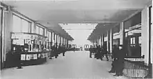 East of the train shed was the waiting station. This consisted of a 37-foot-6-inch (11.43 m) by 137-foot (42 m) platform covered by a skylight, with waiting rooms underneath.[1]