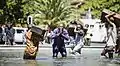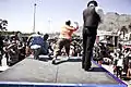 The 2010 Festival was oriented around the theme Human Rite and asked artists to take a deep look at the dynamics of Cape Town society and to "creatively envision the kind of society that we want to live in".[9] The artists were invited "to ask: What cries out for transformation or healing? Who needs to be included in the social fabric of the City?; and how do we amplify and liberate the energy of the CBD? The artists confronted Cape Town's collective demons and to put them to rest, to seek out silent memories and invisible stories, and to validate them, to look for what needs to be righted, and 'rited'. To broaden and deepen the way we experience the world we live in and to celebrate our fundamental human right to express who we are".[10] The programme included installations that engage with Capetonians and visitors to Cape Town, choreographic works (Windows into a World, Dancing Jesus), large-scale collaborative performance art pieces (Imperfections, Meet Market, Quiet Emergency) and low key interventions (Grey Matter, Information People, Jump, Mandala for Healing, the Wishing Wall), as well as discussion forums (The Right to Respond. Participating artists came from Cape Town, Johannesburg, Grahamstown, Zimbabwe, China, UK, Greece, Germany, USA, Australia and the Netherlands.