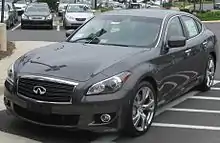 Infiniti (インフィニティ, Infiniti, IPA: [iɰ̃ɸiniti]) is the luxury vehicle division of the Japanese automaker Nissan. Infiniti officially started selling vehicles on November 8, 1989, in North America. The marketing network for Infiniti-branded vehicles included dealers in over 50 countries in the 2010s.[3] As of 2020, there were 25 markets served by new car dealers. The main markets are North America, China, and Middle East.
