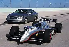 In 1996, Nissan launched an effort to compete in the Indy Racing League with the Infiniti brand.[38] The engine chosen for the Indy cars was a racing variant of the VH engine used in the production Q45s. Eddie Cheever resulted third in the 2000 season. The IRL program was quietly wrapped after the 2002 season after a few wins.[39] In 2011, Infiniti began sponsoring Formula One team Red Bull Racing,[40] which was chosen due to the team's already existing collaboration with the Renault-Nissan Alliance, with Renault supplying engines to Red Bull Racing.[41] In 2011, Infiniti signed Formula One World Champion Sebastian Vettel as its first global ambassador.[42] Infiniti ended its sponsorship of the team after the 2015 season.