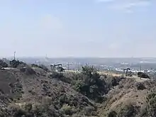 Climate in the area is Mediterranean, with cool rainy winters and mild summers, with the heat moderated by morning fog and low clouds. The field contains both native and non-native vegetation, primarily on hillsides and in the narrow areas between drilling pads, tank farms, and work areas, as the field is densely developed. Surrounding land use is residential, recreational, commercial, and industrial, including high-density housing. Racial makeup of the population living within one mile of the field boundary in 2006 was approximately 50% African-American and 15% Hispanic.[6] The 338-acre Kenneth Hahn State Recreation Area is adjacent to the oilfield on the northeast.[7]