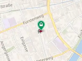 The station lies in Hötting, to the west of the town centre, between Fürstenweg, to which it is connected by a pedestrian path, and Ampfererstraße from which there is car access. Is it geographically the closest rail station to the Innsbruck Airport, from where local bus F travels along Fürstenweg near the station.